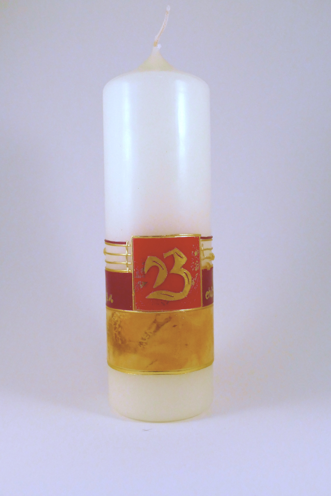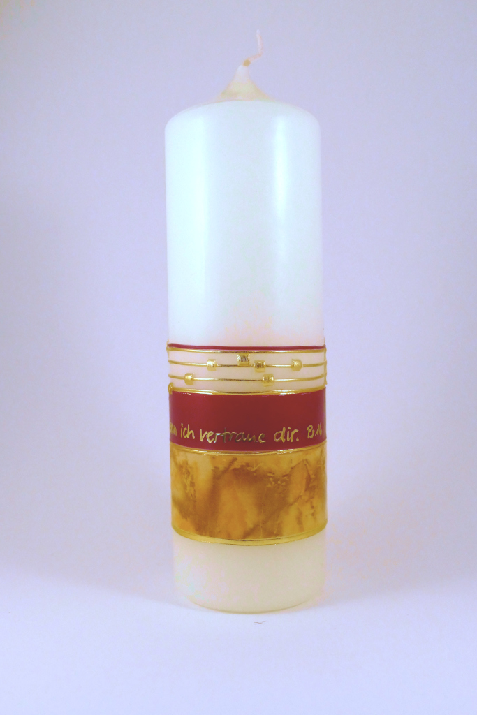 Handgefertigte Geschenkkerze mit dem Motiv Antiphon Ps 16,1, aus unserer klostereigenen Kerzenwerkstatt.