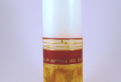 Handgefertigte Geschenkkerze mit dem Motiv „Freude“, aus unserer klostereigenen Kerzenwerkstatt.