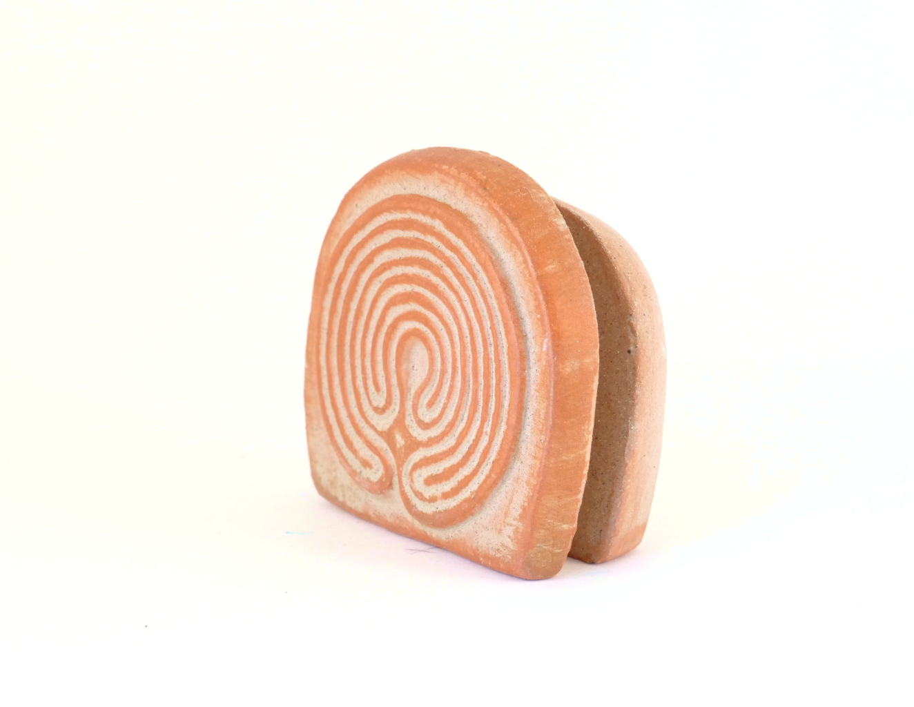 Mit diesem Kartenhalter mit dem Symbol Labyrinth aus handgemachter Keramik in rot, lassen sich Karten und Fotos einfach und wirkungsvoll präsentieren.