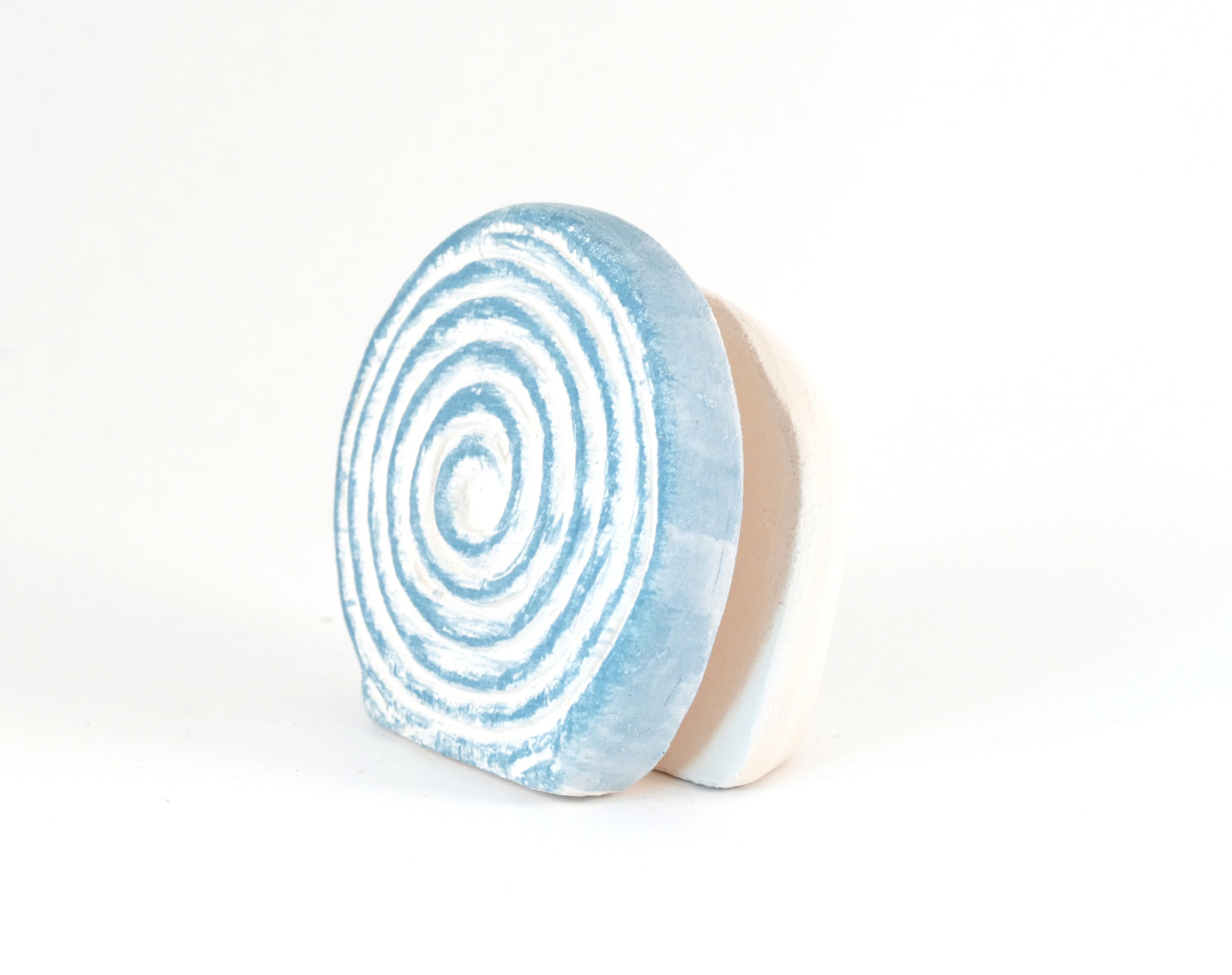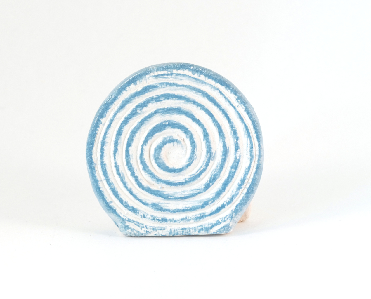 Mit diesem Kartenhalter mit dem Symbol der Spirale aus handgemachter Keramik in weiß, lassen sich Karten und Fotos einfach und wirkungsvoll präsentieren.
