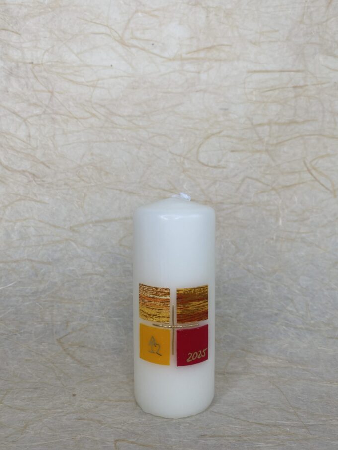 Handgefertigte Osterkerze mit dem Motiv Kästchenkreuz, klein, aus unserer klostereigenen Kerzenwerkstatt.