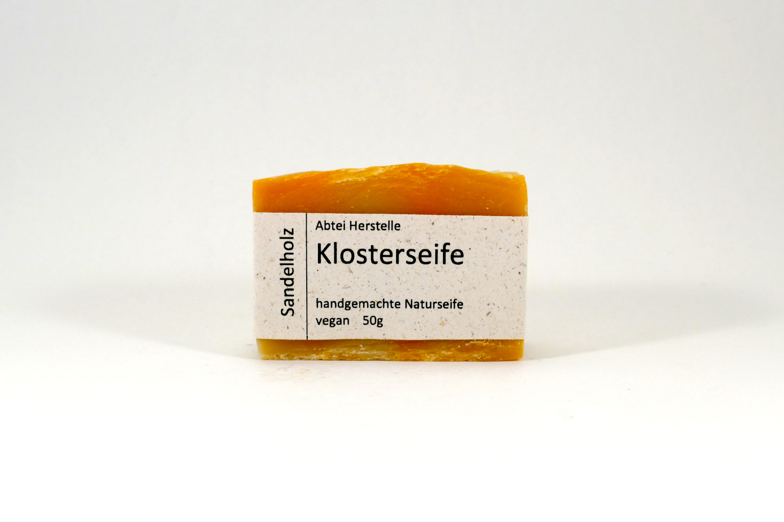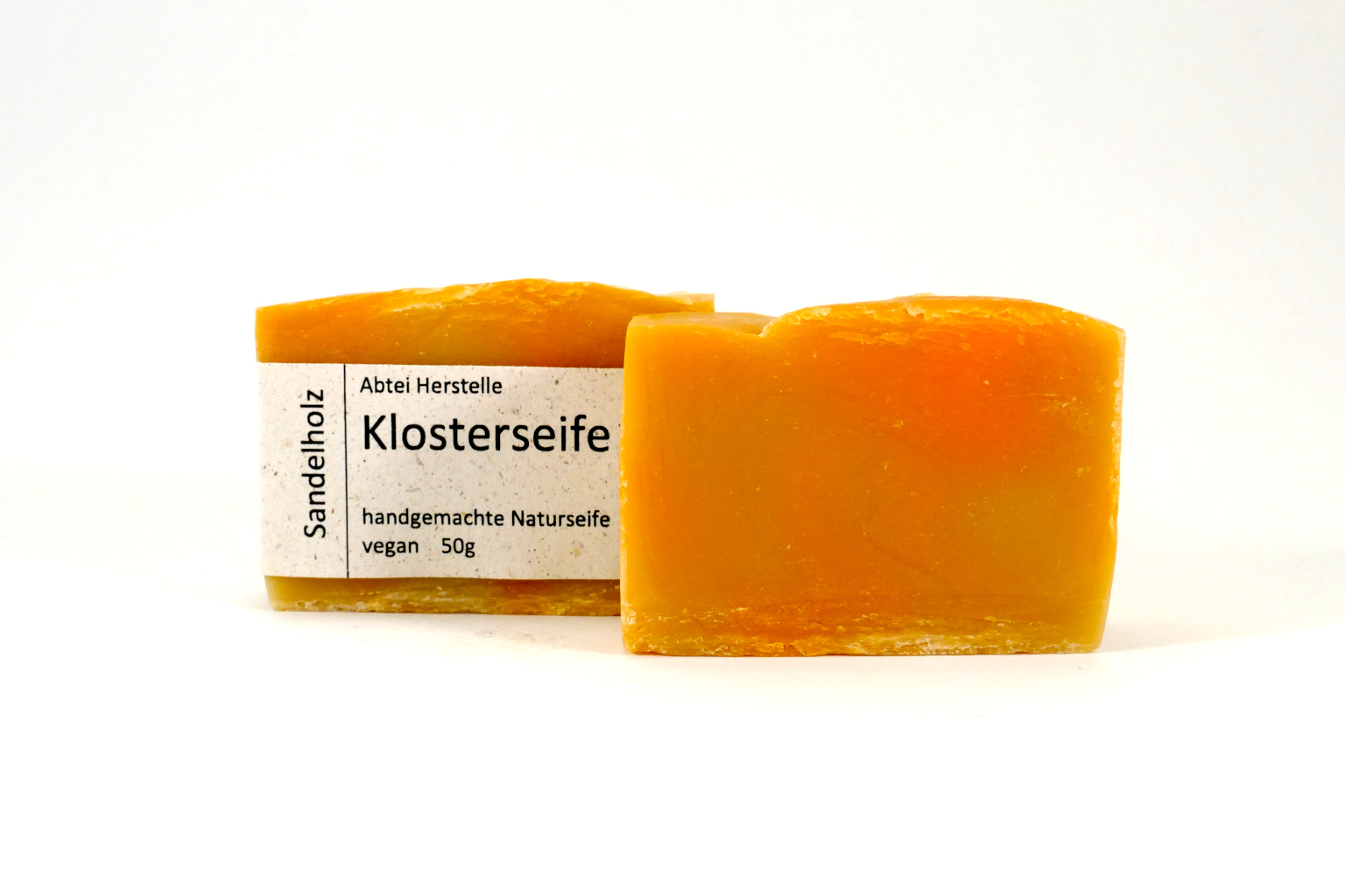 In der Seifenmanufaktur unseres Klosters fertigen wir in reiner Handarbeit Seifen aus hochwertigen Pflanzenölen im schonenden Kaltverfahren. Durch das natürlich enthaltene Glycerin sowie einen Überfettungsgrad von 6-9%, sind diese mit großer Sorgfalt hergestellten Klosterprodukte besonders hautpflegend. Dies garantiert eine milde Reinigung und sanfte Pflege selbst anspruchsvoller Haut. Nach Abschluss des aufwendigen Herstellungsverfahrens reifen unsere Seifen 4-6 Wochen. Dadurch werden sie noch sanfter und hautfreundlicher, aber auch ergiebiger. Liebevoll von Hand mit einer Banderole aus nachhaltigem Graspapier verpackt findet unsere Sandelholzseife 50g dann den Weg zu Ihnen.