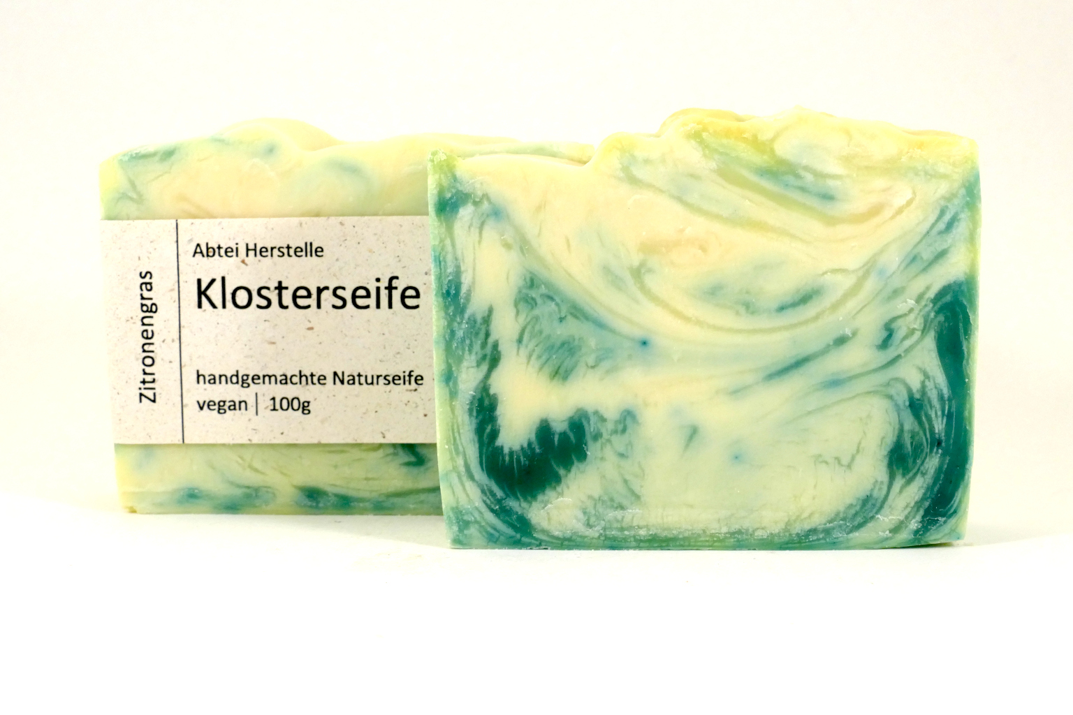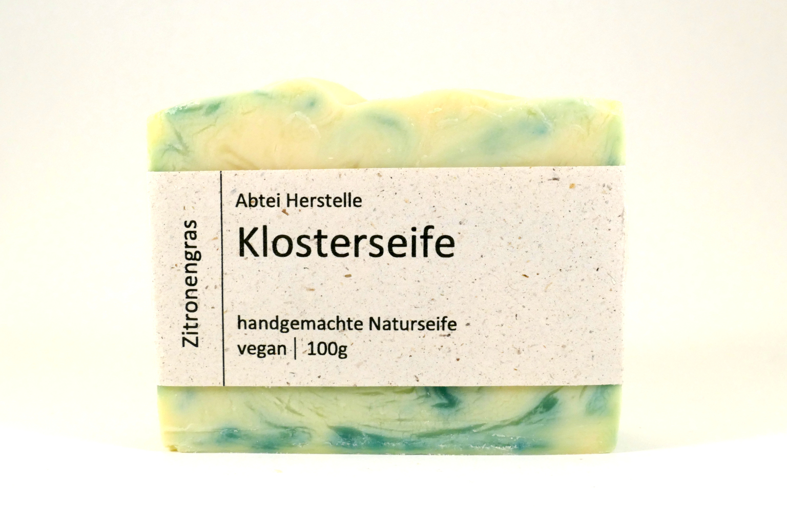 In der Seifenmanufaktur unseres Klosters fertigen wir in reiner Handarbeit Seifen aus hochwertigen Pflanzenölen im schonenden Kaltverfahren. Durch das natürlich enthaltene Glycerin sowie einen Überfettungsgrad von 6-9%, sind diese mit großer Sorgfalt hergestellten Klosterprodukte besonders hautpflegend. Dies garantiert eine milde Reinigung und sanfte Pflege selbst anspruchsvoller Haut. Nach Abschluss des aufwendigen Herstellungsverfahrens reifen unsere Seifen 4-6 Wochen. Dadurch werden sie noch sanfter und hautfreundlicher, aber auch ergiebiger. Liebevoll von Hand mit einer Banderole aus nachhaltigem Graspapier verpackt findet unsere Zitronengrasseife 100g dann den Weg zu Ihnen.
